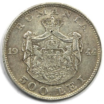 Rumænien, Mihai I, 500 Lei SØLV 1944 - KM 65