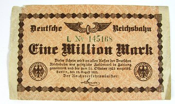 Lot bestående af 3 Danske stats- præmieobligationer af 1962, Yuan 1962, 5 Yuan 1980, inflationsseddel *Deutsche Reichsbahn* 1923 på 1 mio. Mark samt tyske nødpengesedler fra tiden omkring 1920.