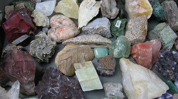 Samling med et utal af mineraler, delvis i krystalform fra hele verden. Proveniens: Dansk privatsamling.