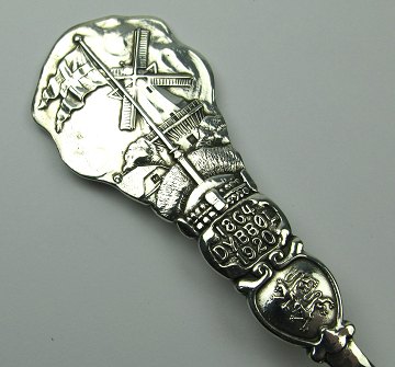 Dybbøl mølle erindringsske af lethamret sølv, fremtillet i anledning af genforeningen i 1920. L. 16,5 cm., vægt ca. 50 gr. Fernanda Hansen sølvsmedje - København 1911 - 1937
