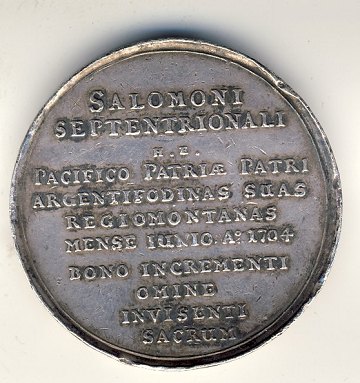 Frederik IV, stor sølvmedaille til minde om Kongens besøg på Kongsberg juni 1704.
