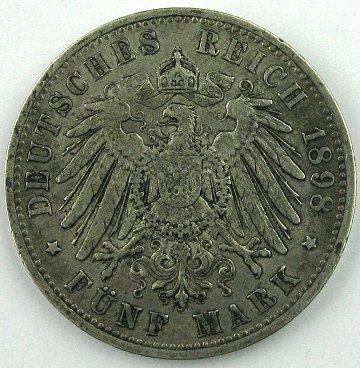 Tyskland, Preussen, Wilhelm II, 5 mark SØLV 1898A - KM 523