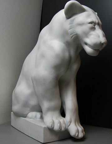 Imposant stor løve af bisquit porcelain fra Royal Copenhagen, dessin 1249339, modelleret af Pia Langelund. H. 41 cm. 1. sortering.