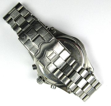 Tag Heuer Professional herrearmbåndsur i urkasse og med lænke af stål. Azurblå skive bag safirglas med selvlysende stregindikationer og #12 i arabertal, separat sekundviser og chronographfunktioner. Quartsværk. Urkasse Diam. 39 mm.. Ref. nr. CK 1112