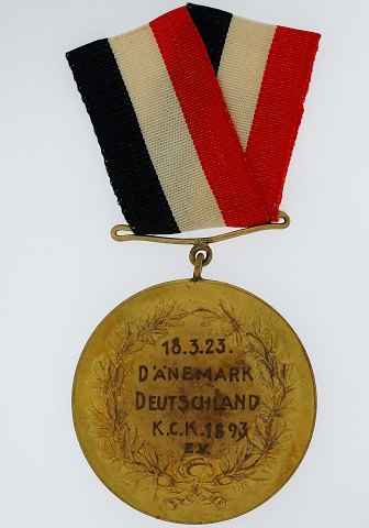 Interessant medaille af forgyldt bronze, præget i anledning af landskampen i brydning 1923 mellem Danmark og Tyskland. Diam. 40 mm.