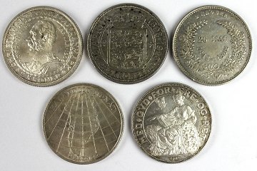 2 kr Chr. IX og Dronning Louises guldbryllup 1892 - H 11, 2 kr Chr. IX regeringsjubilæum 1903H 12, 2 kr tronskifte Chr. IX til Fr. VIII 1906 - H3, 2 kr. Chr. X og Dronning Alexandrinas sølvbryllup 1923 - H4 samt 2 kr Grønlandsindsamlingen 1953 - H2