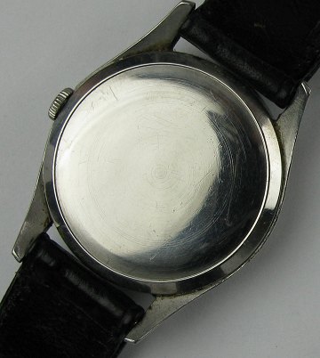 Omega herrearmbåndsur i urkasse af stål. Champagnefarvet skive bag buet plexiglas med arabertal og stregindikationer, separat sekundviser. Manuelt optræksværk. Urkasse Diam. 35 mm. Læderrem.
