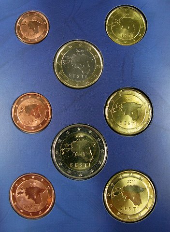 Møntsæt med hver 2 og 1 euro samt 50, 20, 10, 5, 2, og 1 cent fra henholdsvis Malta, Cypern, Estland, Slovakiet, Slovenien. 5 møntsæt i alt.