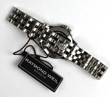 Raymond Weil damearmbåndsur i urkasse af stål. Perlemorskive bag safirglas med stenbesat krans, romertal, stenbesatte punktindikationer og datovisning i #3 positionen. Quartsværk. Urkasse Diam. 29 mm. Ref. nr. 5399