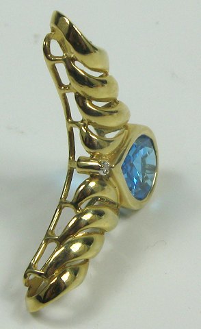 Vedhæng af 14 kt. guld prydet med dråbeformet, azurblå sten og brillant, 0,005 ct. Diam. ca. 37 mm, samlet vægt ca. 6,8 gr.