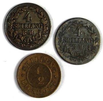 2x 4 skilling sølv - H 5a, ½ skilling rigsmønt H 7