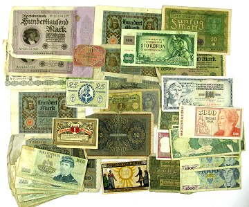 41 sedler Tyskland, inflationstiden omkring 1920 samt hele verden, heriblandt Chile, Venezuela, Polen. Jugoslavien samt nødpengesedler.