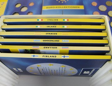 Euro møntsæt fra hvert af de 12 oprindelige medlemslande der startede med euro i 2002.
