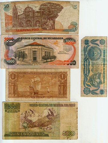 17 sedler fra bl.a. Guatemala, Honduras, Peru, Ecuador.