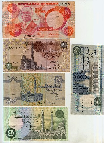 14 sedler fra bl.a. Egypten, Israel, Tyrkiet, Zaire, Nigeria.