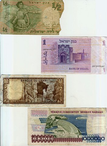 14 sedler fra bl.a. Egypten, Israel, Tyrkiet, Zaire, Nigeria.