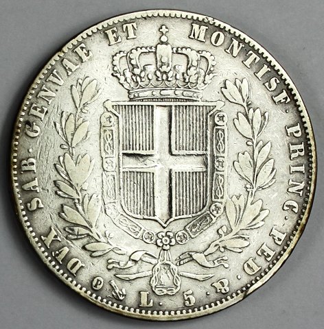 Italien/Sardinien, Albertus Rex 5 Lire 1847 SØLV - KM 130.2