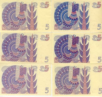 Lille årstalsamling af 5 kr sedler (6 stk)