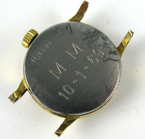 Omega damearmbåndsur i urkasse af forgyldt metal. Sølvfarvet skive med stregindikationer. Urkasse Diam. 20 mm. Original opbevaringsæske og ikke tilhørende Fixo-Flex lænke medfølger. Uret er et reservedelsobjekt.
