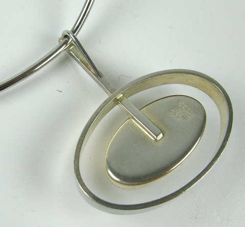 Tætsluttende design halssmykke i form af halsring og vedhæng af sterling sølv. Diam. ca. 12 cm. Vægt 26,5 gr.
