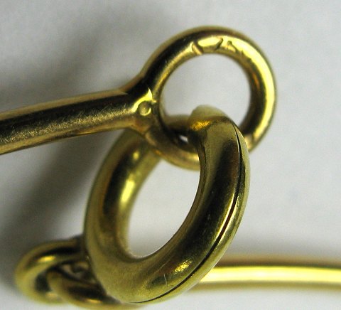 Tætsluttende halssmykke af 18 kt. GULD, prydet med vedhæng i form af guldnugget. Tredelt halsring Diam. 11 cm., vedhæng L. 35 mm. Samlet vægt 19 gr.