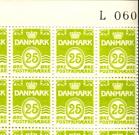 Helark Danmark 25 øre lysegrøn bølgelinie, L 060