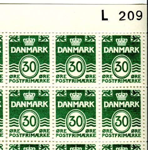 Helark Danmark 30 øre mørkegrøn bølgelinie, L 135