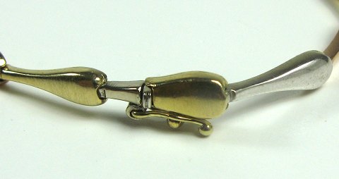 Armlænke med dråbeformede led af 14 kt. trefarvet guld.
