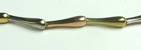 Halscollier af dråbeformede led af 14 kt. flerfarvet guld.