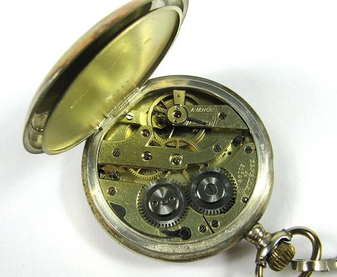 Lommeur i urkasse af sølv, importeret af urmager Hans Sørensen, Jels. Hvid skive med arabertal og separat sekundviser. Capella værk nr. 31191. Urkasse Diam. 50 mm., vægt ca. 73 gr.