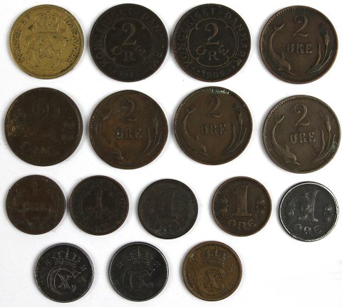 Chr. IX, Fr. VII og Chr. X samling ½ kr, 5 øre og 1 øre, diverse årstal.