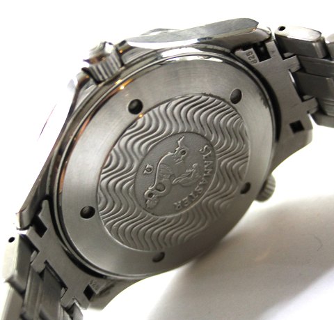 Herrearmbåndsur fra Omega, model Seamaster Professionel 300 M, ref.nr.: 25418000, med kasse og lænke af stål, sort, bølgestruktureret urskive med fluoriserende punktinddeling, sekundviser, datoangivelse ved 3" position, marineblå lynette med arabertal, safirglas, quartz værk, vandtæt til 300 m. Ø 41 mm.