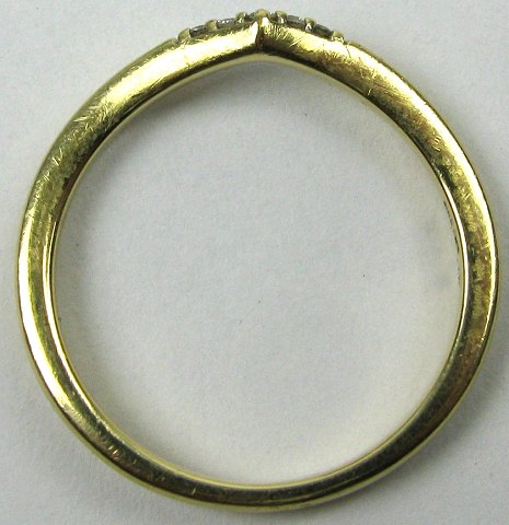 Ring af 14 kt. guld med tilspidset skinne, prydet med række på 5 brillantslebne diamanter, samlet ca. 0,02 ct.