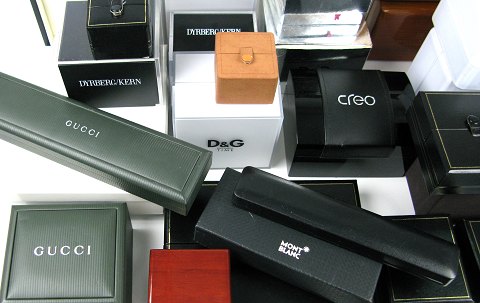 Lot originalbokse, delvist med indhold i form af følgepapirer, opbevaringsbokse, lænkeled m.v. i alt 30 enheder.