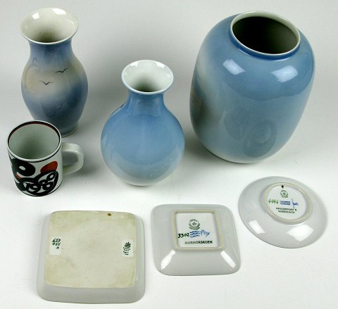 Lot bestående af Kgl. vase 2765/2289, æskebager Marmorbroen, fajancekrus, alle 1. sort. samt Kgl. skål Amagerbro i 2. sortering, B&G askebæger og 2 stk. Lyngby vaser.