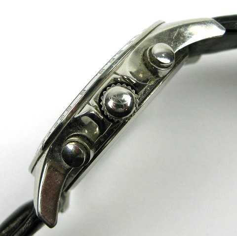 Christina of London herrearmbåndsur i urkasse af stål. Safirglas, sølvfarvet skive med stregindikationer og 6 diamantbesatte punktindikationer 0,03 ct., separat sekundviser og chronographfunktioner. Urkasse diamater 40 mm. Læderrem med metalspænde.