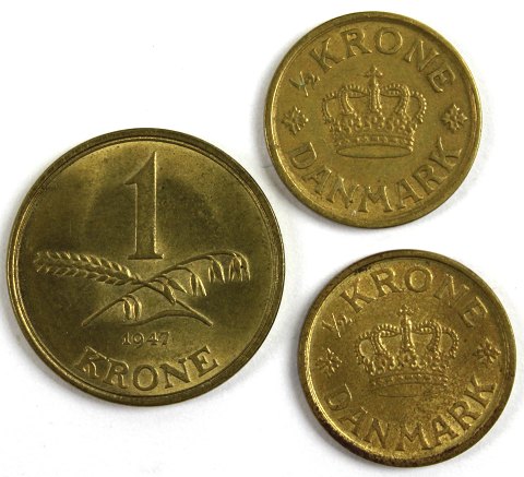 Chr. X kr 1947 - H 23, ½ kr 1926 - H 22A og ½ kr 1940 - H 22B