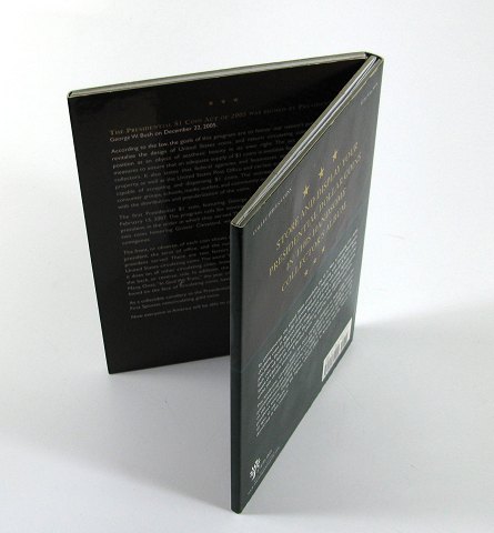 Samlermappe, indeholdende 31 "Presidental Dollar" med plads til yderlige 29 mønter.