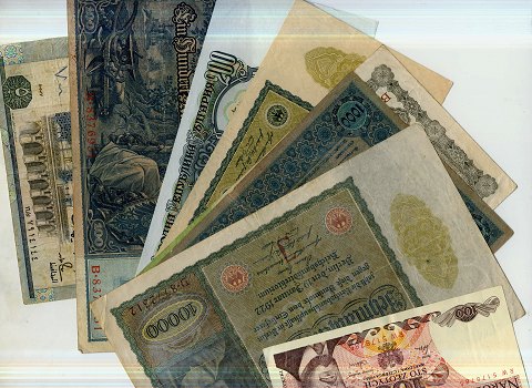 Lot sedler far hele verden, heriblandt en del sedler fra inflationstiden omkring 1920. 33 sedler i alt.