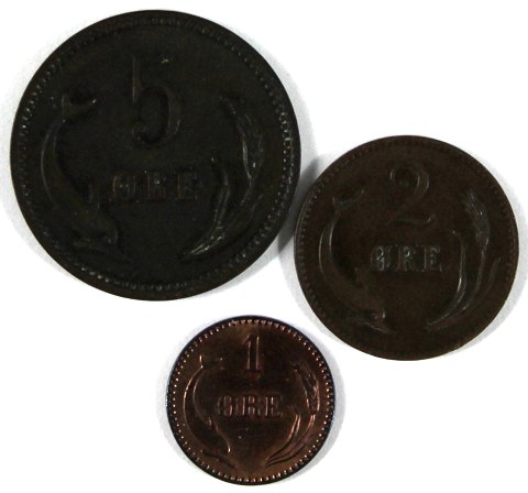 Christian IX 5 øre, 2 øre og 1 øre (3)
