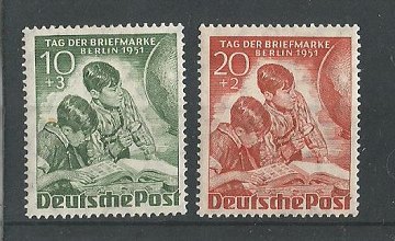 1951. postfriske mærker frimærkets dag. afa værdi.700.-/ komplet sæt friheds klokke (2) med knebel til højre. Afa værdi. 850.-