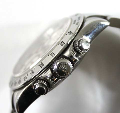 Herrearmbåndsur fra Rolex, model Daytona, ref.nr.: 116520, F-serie, i kasse og m. oysterlænke af stål, monteret med den flotte sølvfarvede skive som kun sælges til ure af hvidguld, lynette i stål, safirglas, chronograffunktion, manuelt/automatisk urværk. Ø. 40 mm.