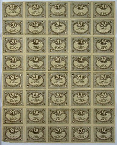 3x foldet ark med 20 rubel 1917, i alt 40 sedler.