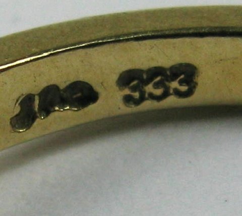 Ring af 8 kt. guld, prydet med diamantsleben sten, diameter 6mm. Ring Str. 53, vægt 2,3 gr.