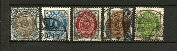 tofarvede øremærker fra 1875 med omv. ramme og tofarvede øremærker fra 1896.