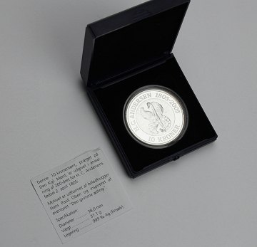 Præget i anledningen af 200 året for H.C. Andersens fødsel. 1 ounce finsølv.