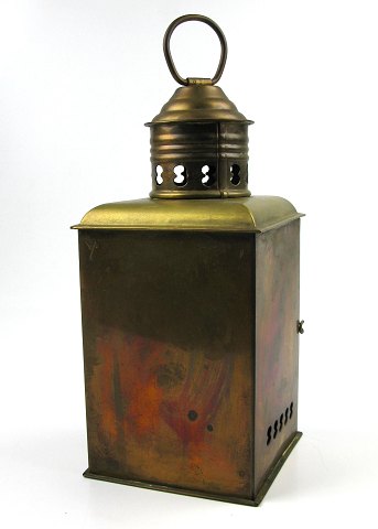 Original engelsk styrbord lanterne af messing med petroleumsbrænder. H. op til røgfang 24 cm.