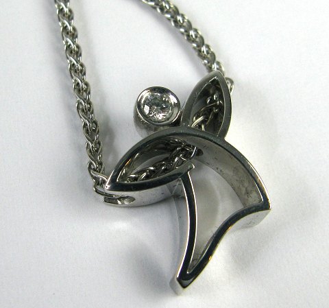 FH halssmykke i form af halskæde med engleformet vedhæng, prydet med brillantsleben diamant Top Wesselton VVS på 0,06 ct. Halskæde L. 42 cm., vedhæng ca. 20 x 15 mm., vægt 8,9 gr.