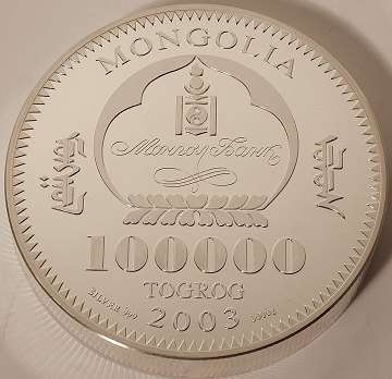 Mongoliet, 100.000 togrog SØLV 2003 Proof - 3 kg