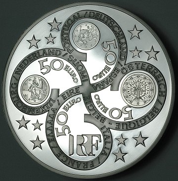 Kæmpesølvmønt på 1 kg - slået til minde om euroens første år.
